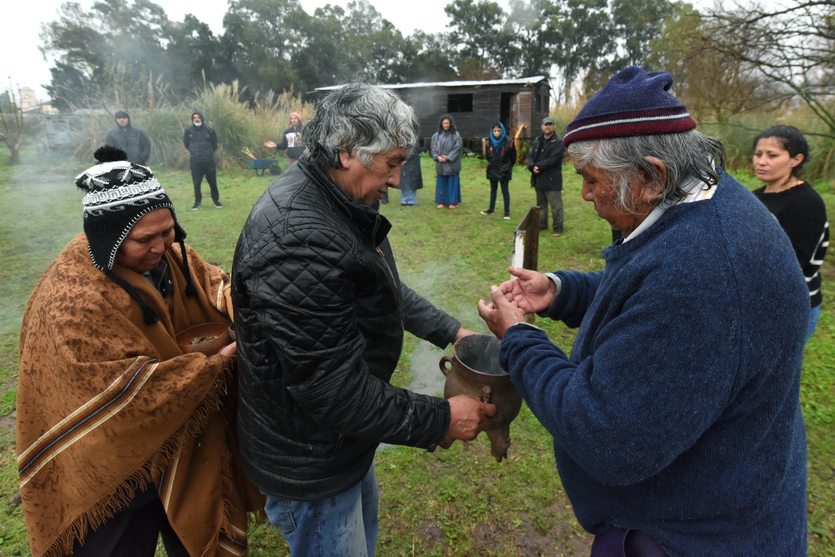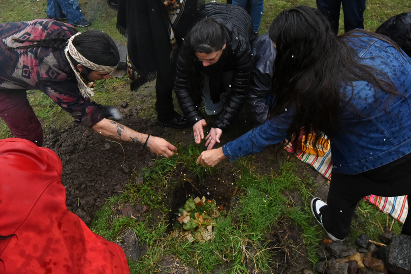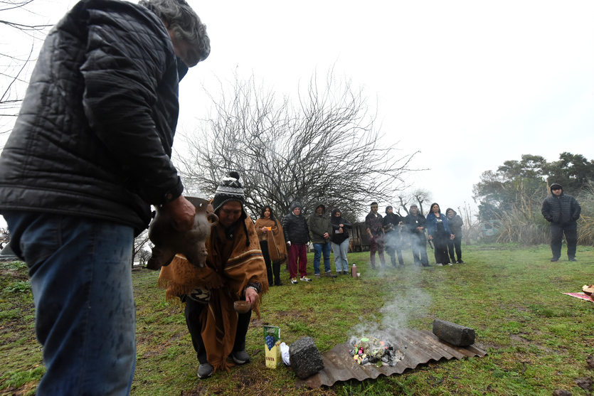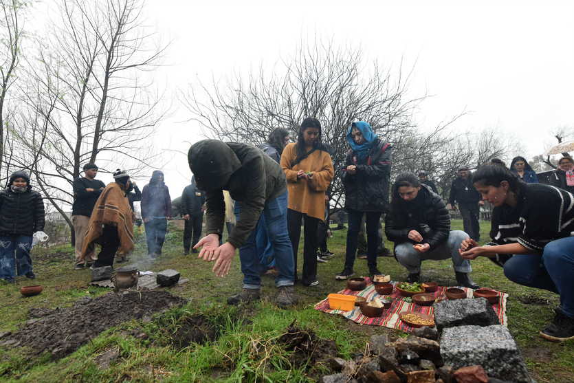 A partir del mediodía comenzó la ronda de bienvenida y con las ofrendas en la Apacheta, uno de los espacios ceremoniales de Punta Querandí. Las lluvias de la tormenta de Santa Rosa no frenaron la jornada.