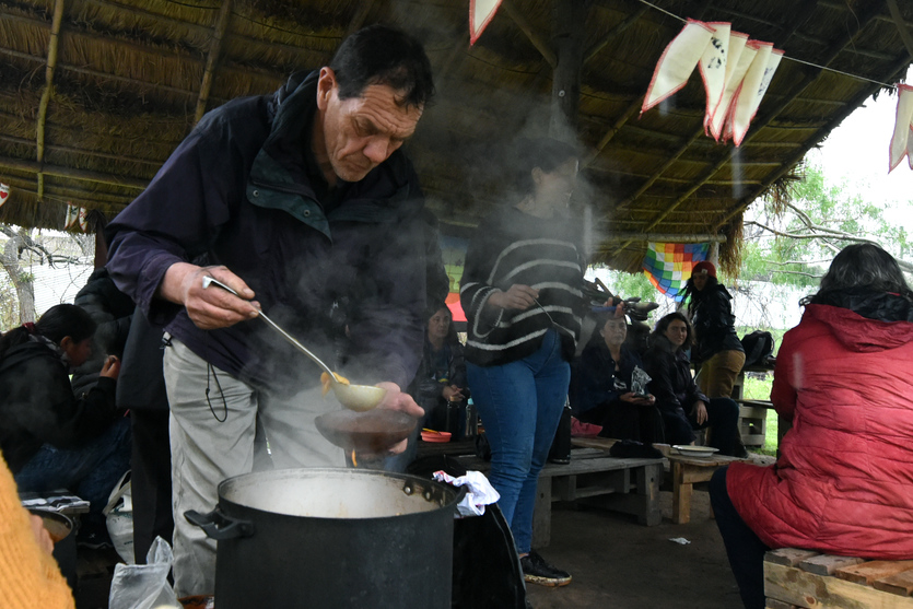 Luego, junto con un guiso de lentejas cocinado en el fogón, dio inicio un festival musical con oradores de distintos sectores cercanos a las luchas de Punta Querandí y la Unión de Pueblos Originarios de Tigre y Escobar.