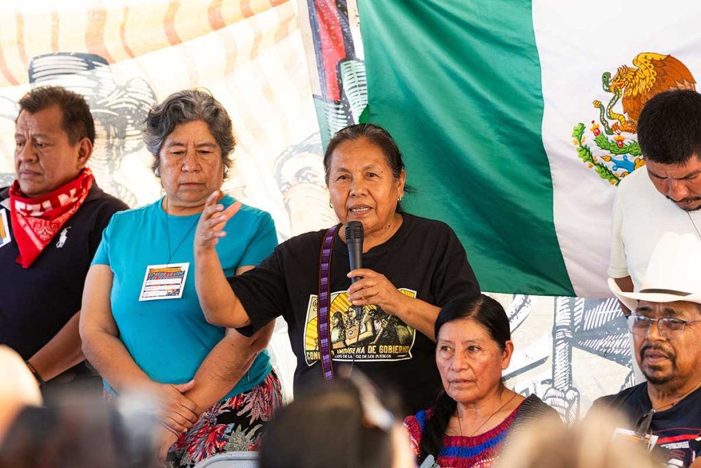 Entre esas voces estuvo la de Faustina, una mujer nahua del estado de Puebla. “Tenemos que seguir participando y organizándonos para que el gobierno y las empresas no sigan con todo esto. Esto no acaba aquí, esto continúa”, sostuvo la mujer que participó de la organización Pueblos Unidos en la región de Cholulteca, que, en 2021, logró cerrar la planta de agua Bonafont-Danone por los sobreexplotación de los recursos hídricos. Y aún resisten su reinstalación.