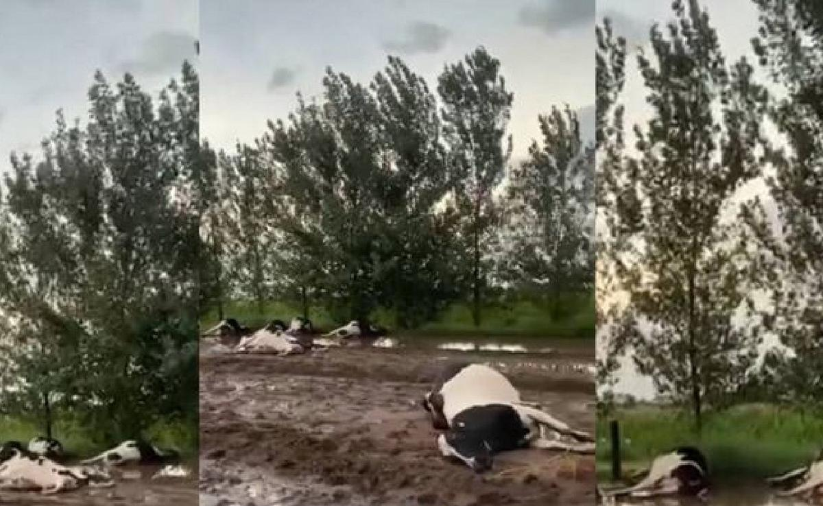 El hecho se conoció luego de la difusión de un video publicado por E95Uno, donde se observan numerosos animales muertos en un campo de la región. Según los primeros reportes, la descarga impactó de lleno sobre el rodeo, compuesto por vacas lecheras pertenecientes a un tambo local.